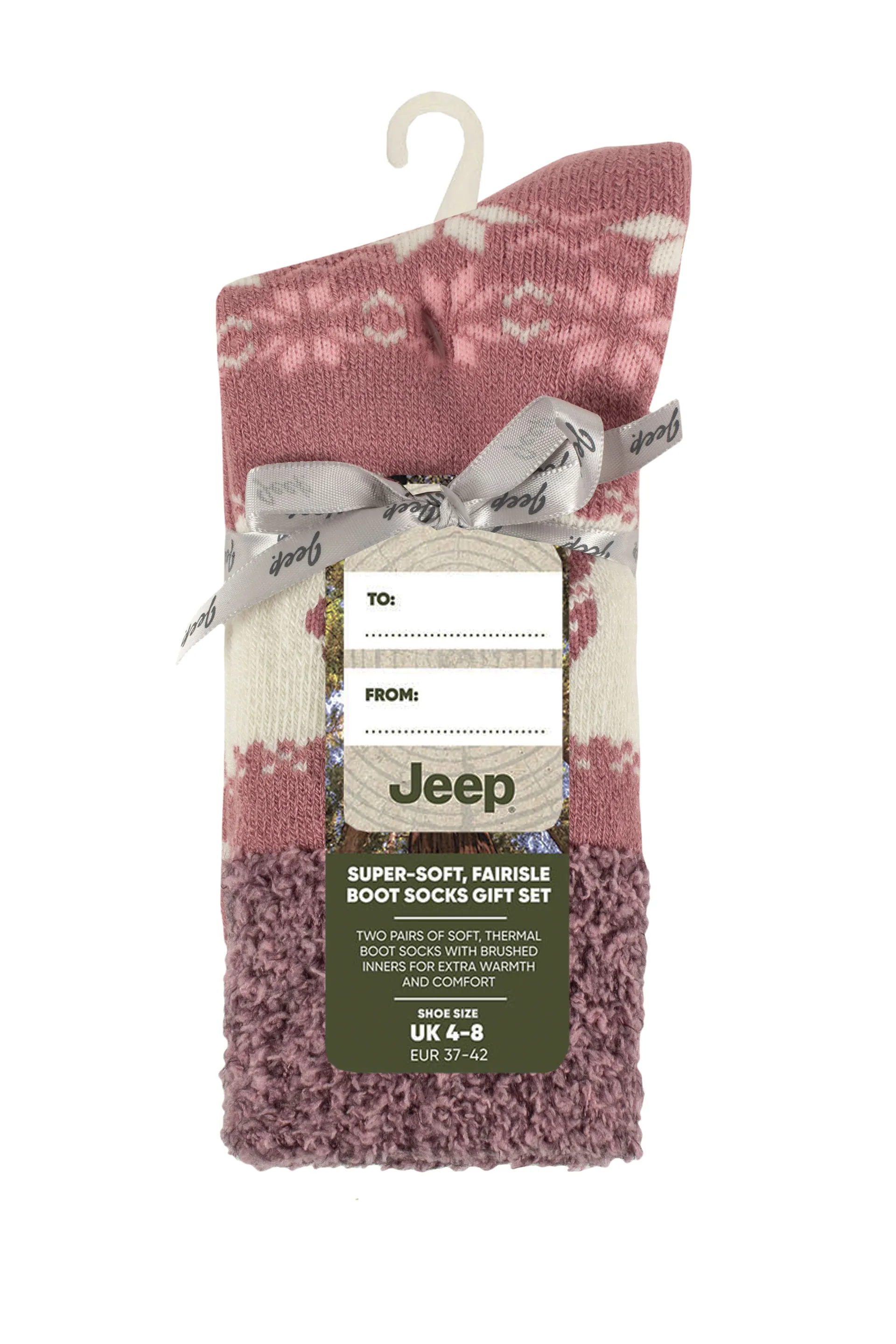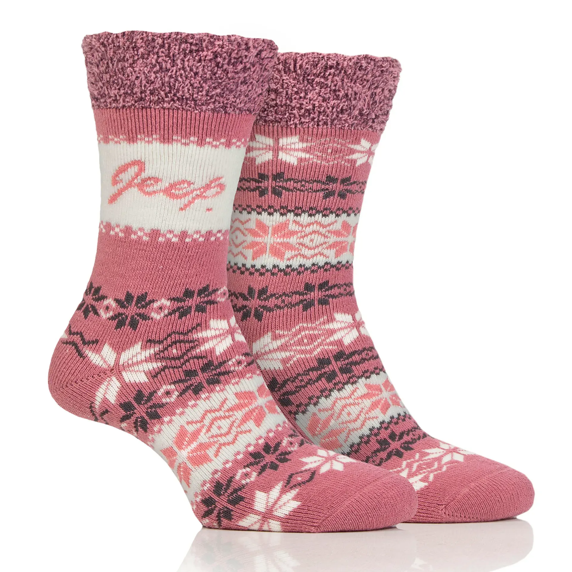 Jeep Ladies JLS185 Fairisle Thermal Soft Top Boot Gift Socks Rose/Cream - 2 Pack