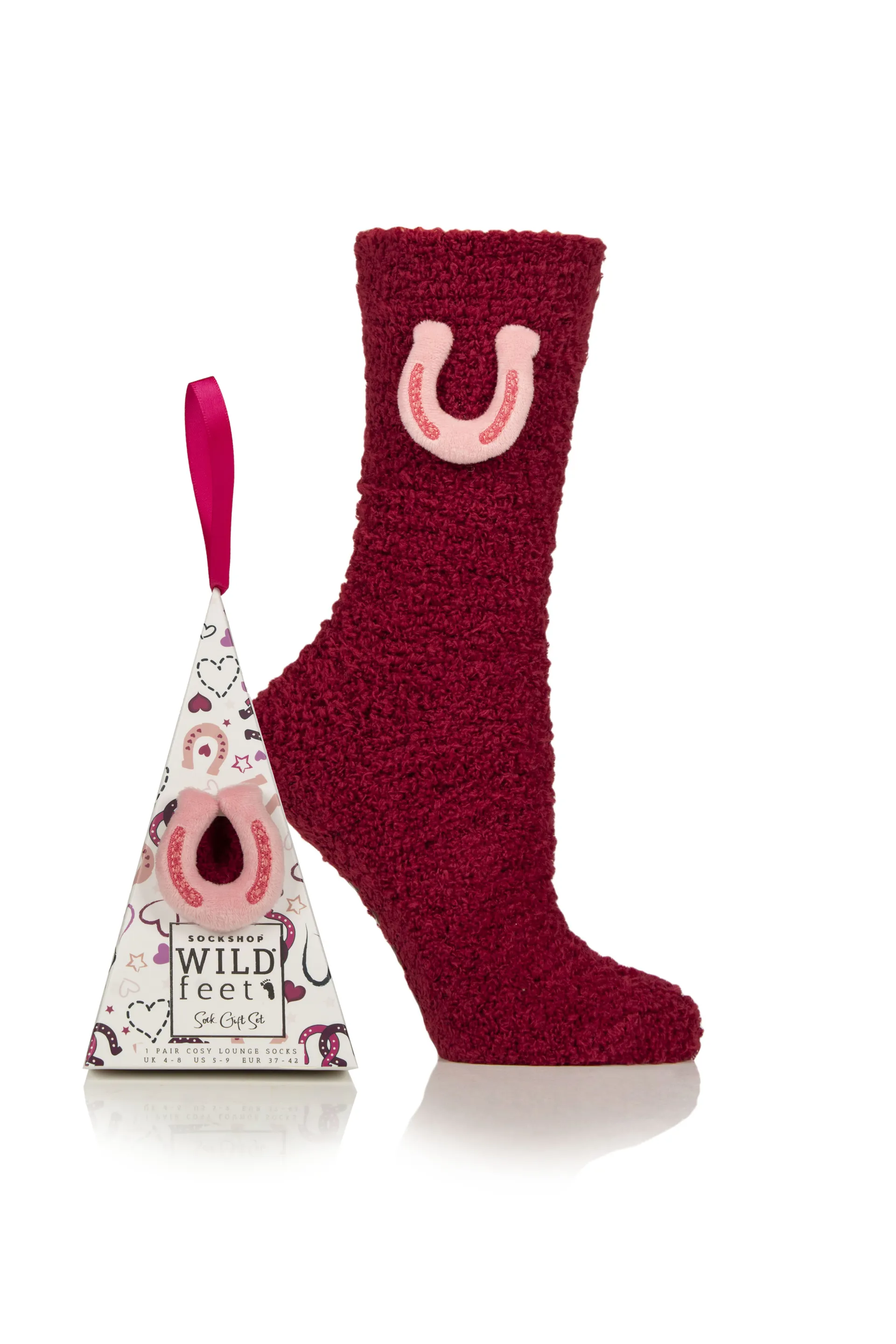 Wildfeet Junior Fluffy Lounge Socks Hanging Gift Box - Horseshoe