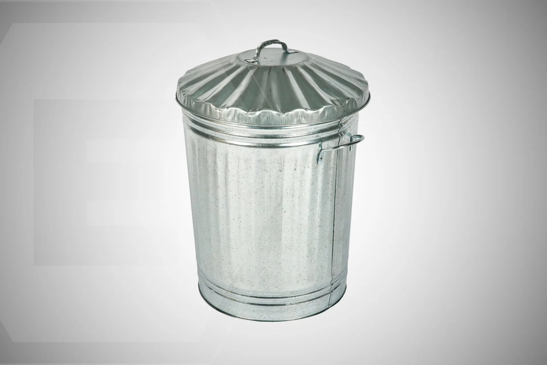 A galvanised dustbin and lid.