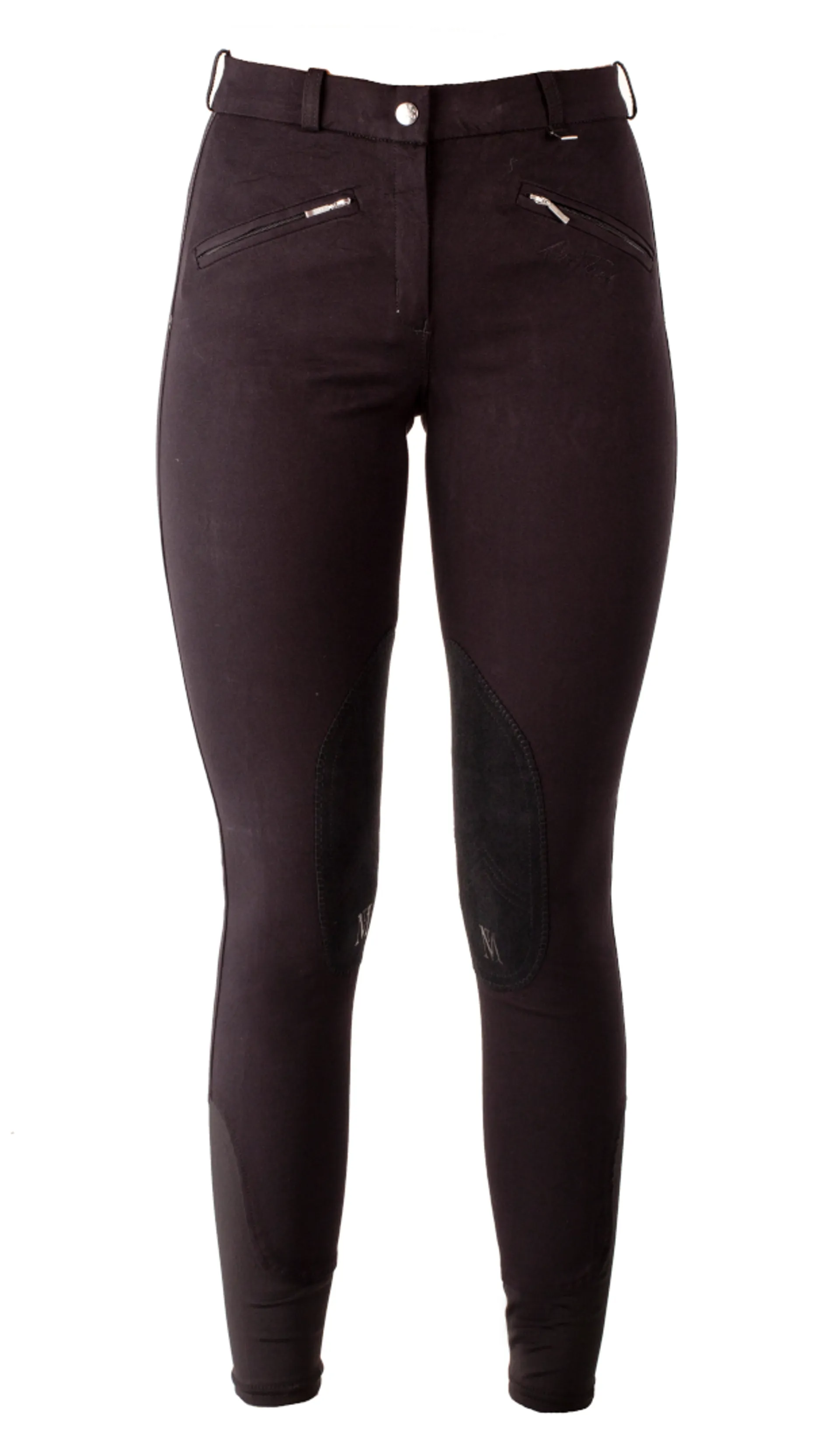 These breeches offer a self fabric Euro seat, ultra grip knee patch with embosssed logo and a wide 4cm waistband with belt loops. There are two front zip pockets for your convenience and embroidered Mark Todd logo.