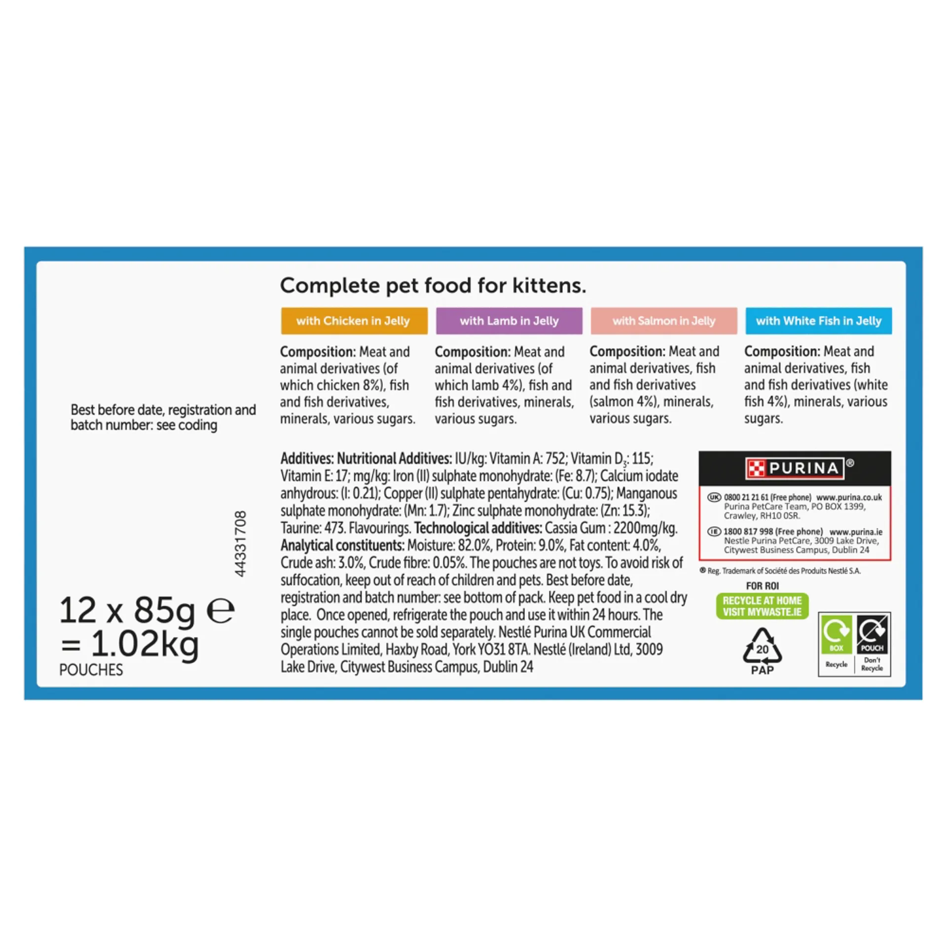Felix Original Pouches Kitten Mixed Selection in Jelly Wet Cat Food 12x85g