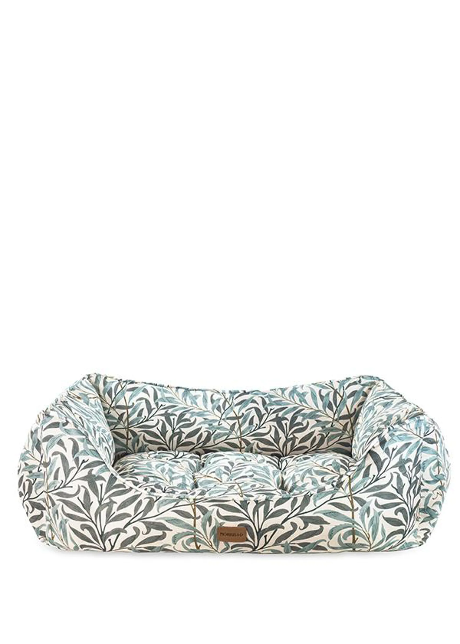 Willow Boughs, originally designed by William Morris in 1887, is the perfect expression of its creator's love of nature and the English countryside. As a visual motif, the willow was an enduring scene of inspiration, carefully studied by Morris. The overall pattern conveys a real sense of harmony and tranquility. Rosewood's Willow Boughs box bed features thickly padded sides for comfort and support, crafted from luxurious and ultra soft linen cotton blend. The inner cushion is reversible with the luxury print on one side and dark green velvet on the other. This bed is available in 3 sizes, suitable for most breeds of dogs and cats.