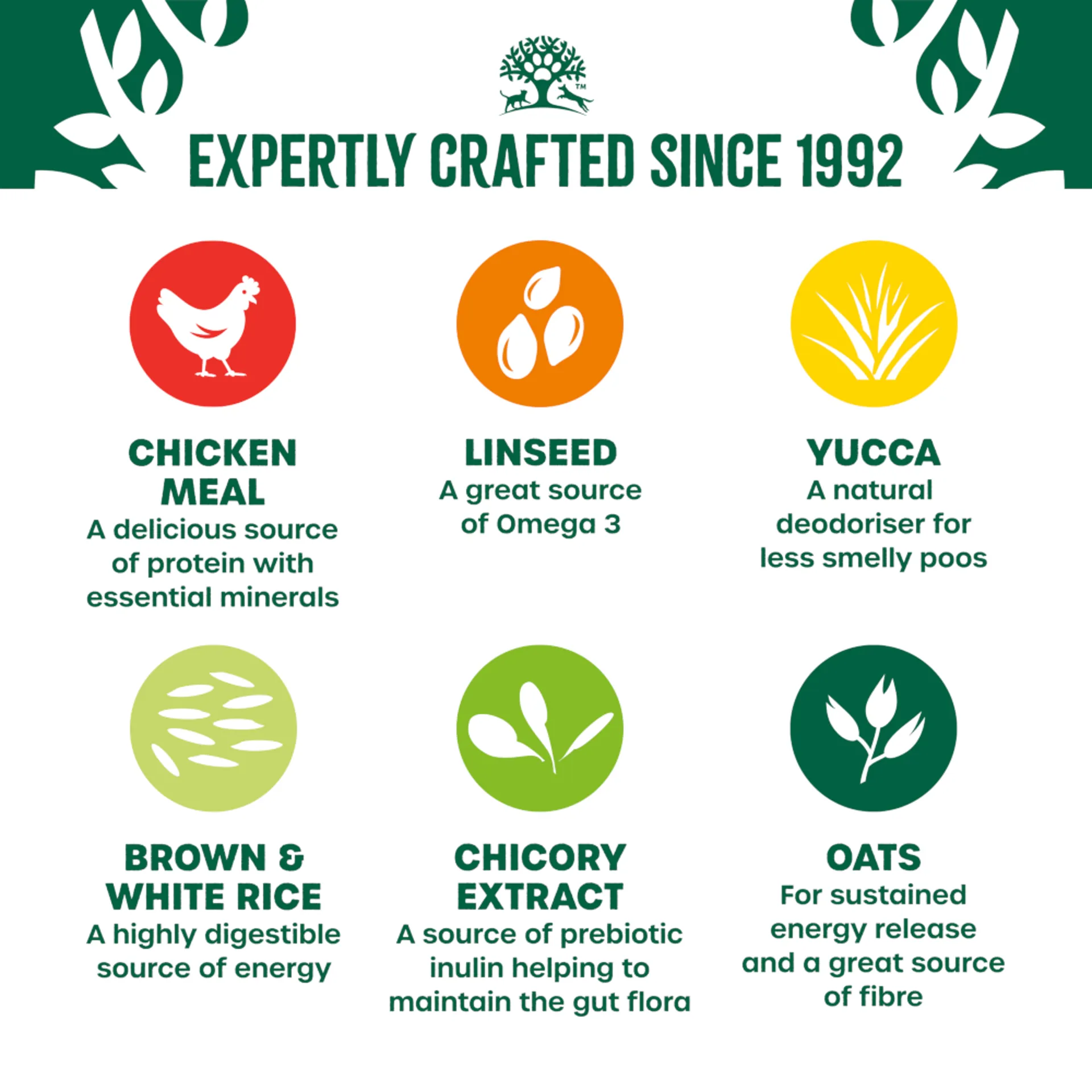 • Single source of animal protein – no beef, pork, soya, eggs, dairy or wheat