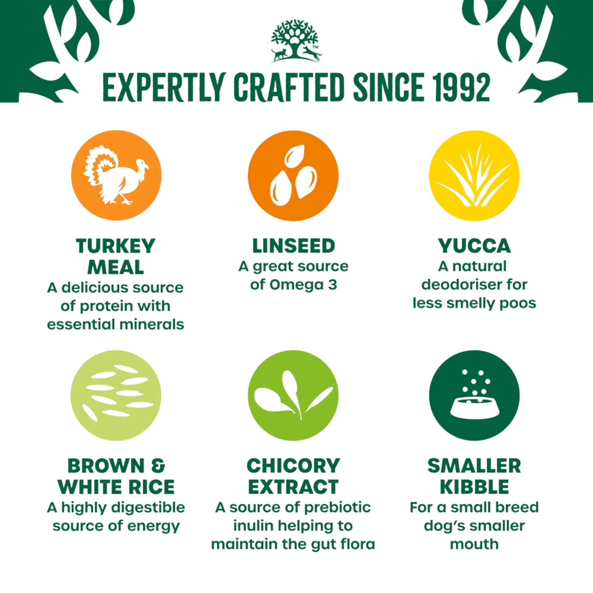 • Smaller kibble for small breeds