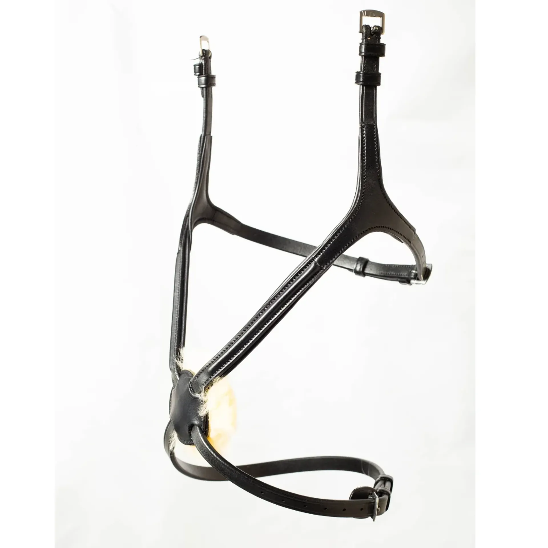Anatomical Shape: Perfect Fit Grackle noseband is carefully shaped to avoid the sensitive nerves and blood vessels on the horse's face, with soft padded sections at the cheek rather than conventional metal rings. The central disc (where the two straps cross) is padded and positioned to sit comfortably on the horse's nasal bone, rather than directly on the delicate facial tissue.