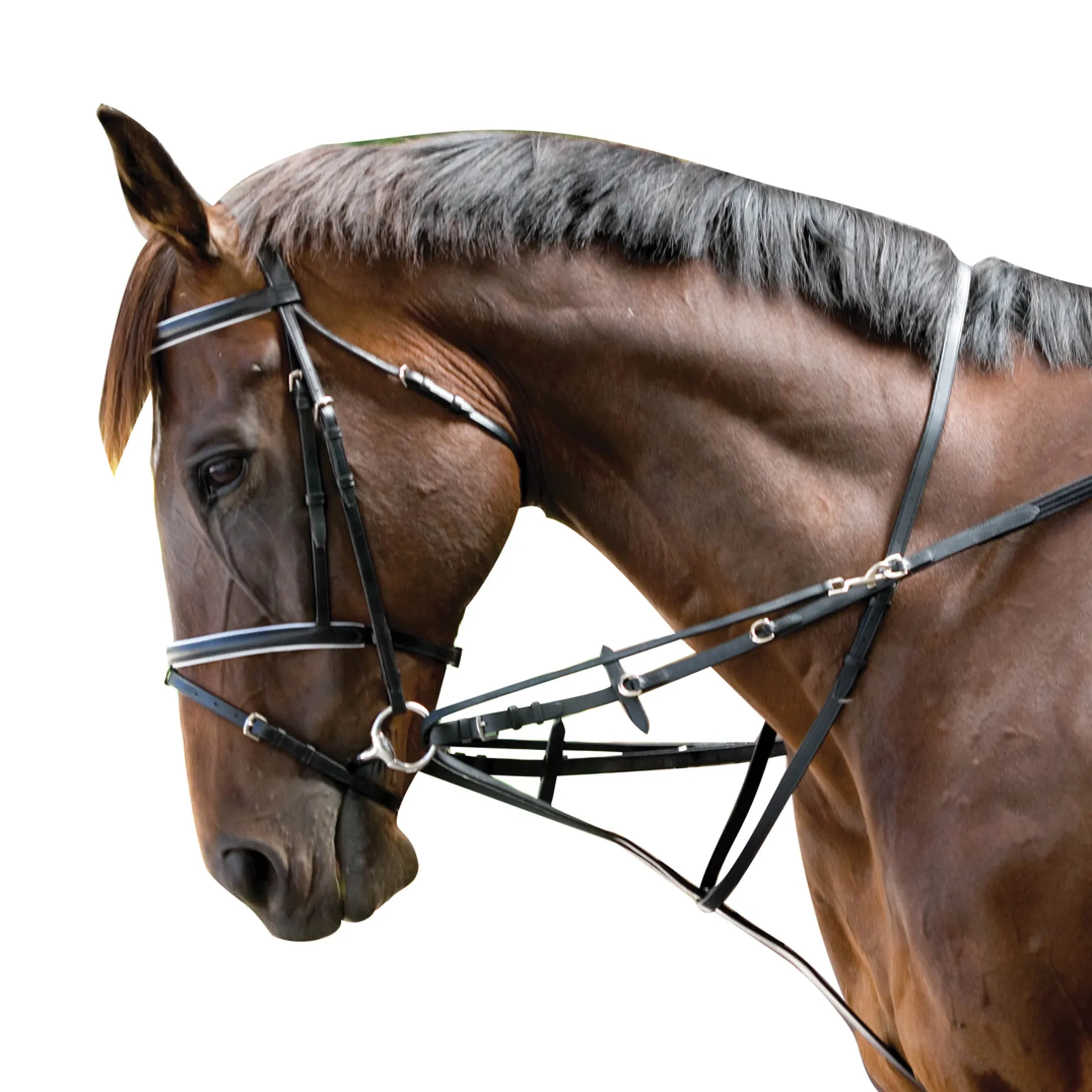 Leather martingale attachment with web rein and D ring adjustment